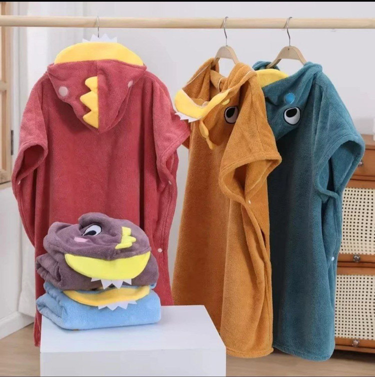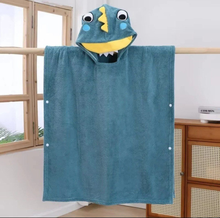 حوله تن پوش کودک شنلی میکروفایبر برند Just Kidding مدل داینو مناسب 2 تا 5 سال