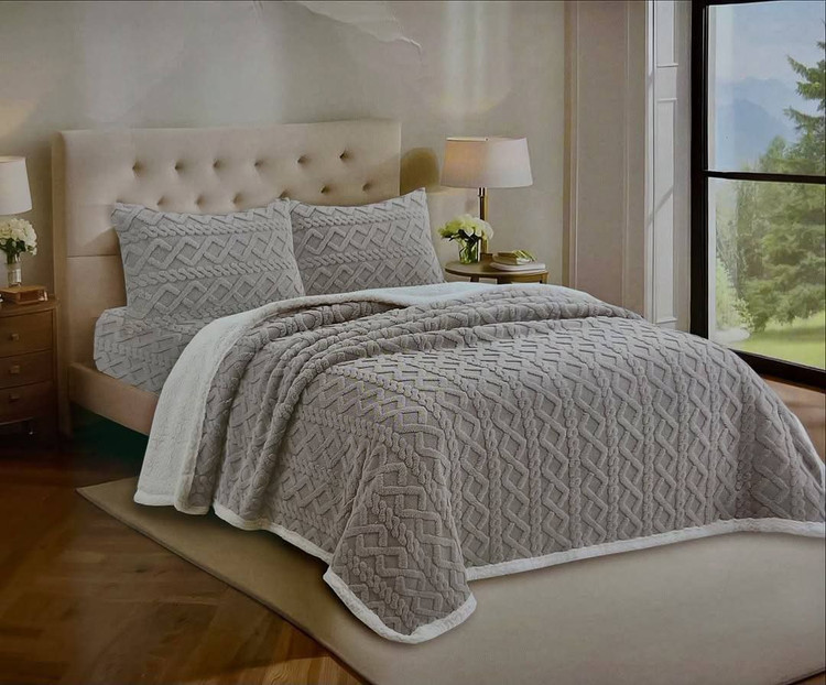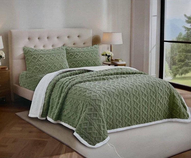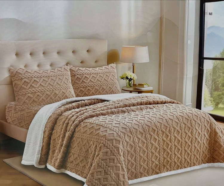 ست حرفه ای روتختی کشدار، روبالشی و پتو دونفره گوسفندی