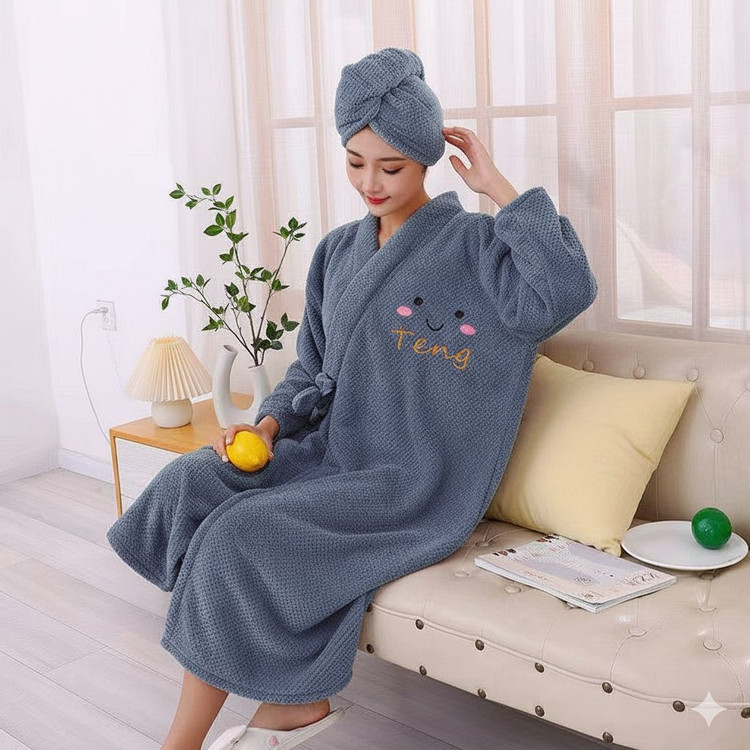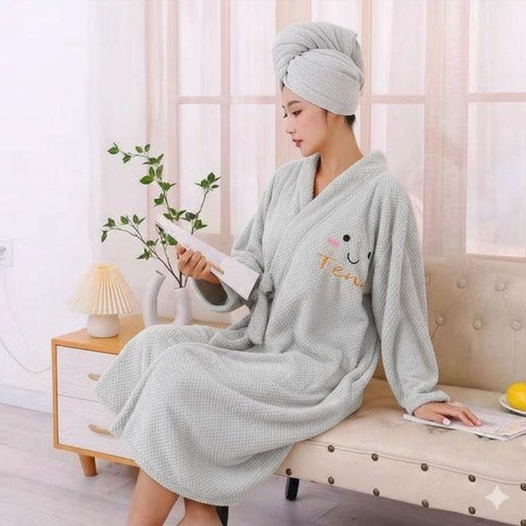 دو تکه بودن (تنپوش و حوله سر): طراحی دو تکه این محصول، شامل یک حوله تنپوش و یک حوله جداگانه برای سر، راحتی و پوشش کامل را برای شما به ارمغان میآورد.